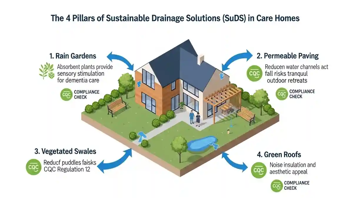 The future of sustainable drainage solutions CQC care home design is the integration of SuDS (Sustainable Drainage Systems). In Ramsgate, Policy EN18 of the Local Plan encourages SuDS to manage surface water runoff, which often plagues the surrounding area.
